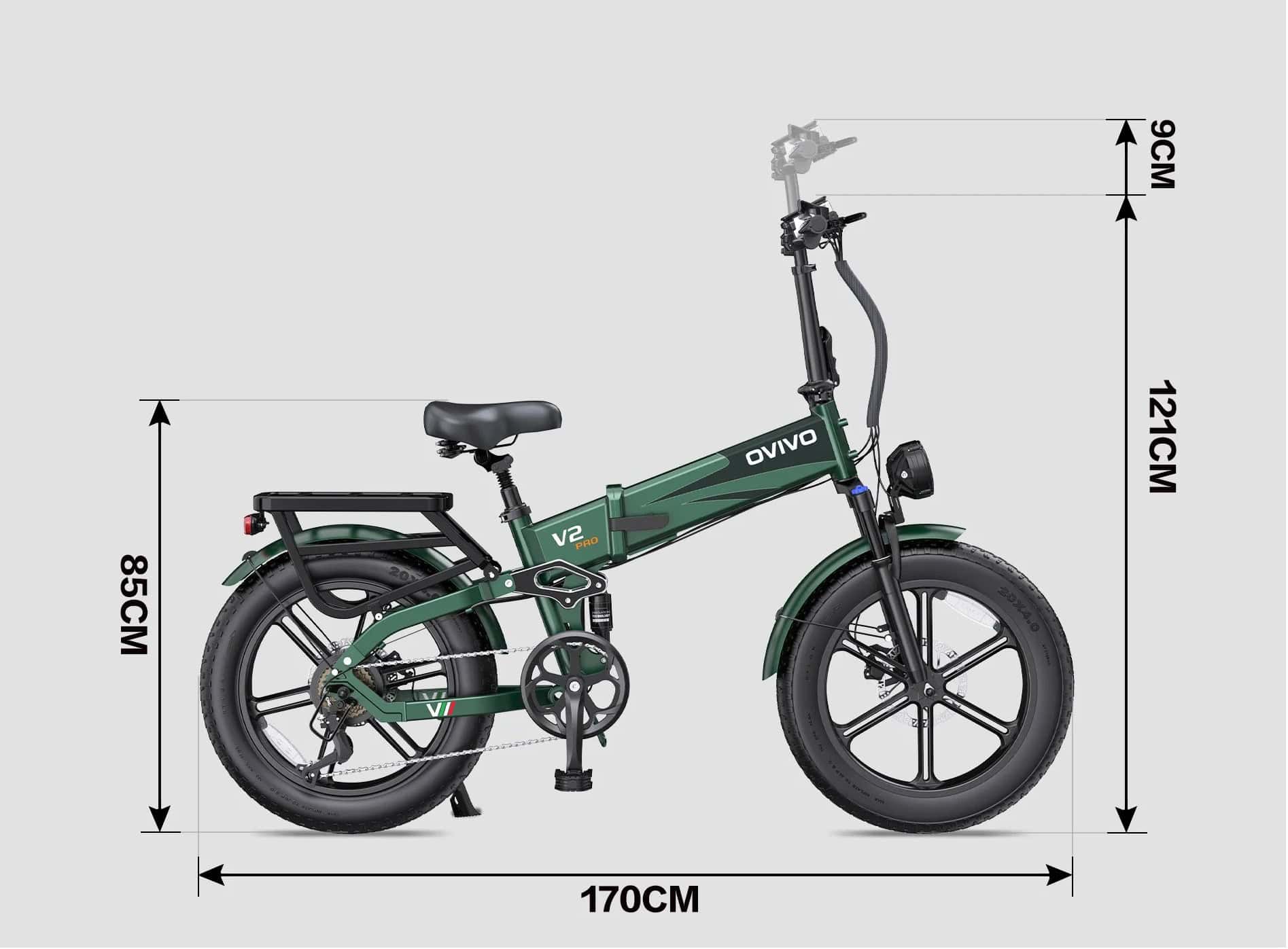 OVIVO V2 Pro 2.0 to wszechstronny składany rower elektryczny, wyposażony w bezszczotkowy silnik o mocy 250 W i wytrzymały, wyjmowany akumulator 48 V 20 Ah. Zaprojektowany do jazdy po różnych terenach, sprawnie radzi sobie na szlakach terenowych, górskich ścieżkach, piaszczystych plażach i nie tylko. Zgodny z przepisami UE, oferuje prędkość maksymalną 25 km/h i zasięg do 130 km w trybie wspomagania, zapewniając dłuższą eksplorację. Gdziekolwiek prowadzi Twoja podróż, OVIVO V2 Pro 2.0 jest przygotowany, aby Ci towarzyszyć.